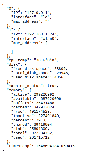 If you prefeer, you can navigate or use the POSTMAN to get the information via JSON: 127.0.0.1:5000/readpietojson